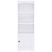 Put finishing touches on a charming media center in your living room with this tower bookcase. Perfect to flank your TV stand, it adds easy storage and display space. Its mix of cabinet and open shelving is versatile and stylish, with three shelves, two of them adjustable, on top of a one-door cabinet with one adjustable shelf. Trim details add subtle character and freshness to the overall look. A neutral finish complements surrounding decor and offers stylish appeal in your living room.