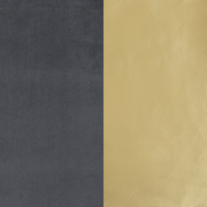 Put a sophisticated spin on living room decor with a modern two-piece sofa and loveseat set. Designed to impress, each piece boasts dark grey upholstery that's velvety soft and trimmed in gold that adds metallic gleam and warm contrast. The gentle curvature of the sofa and loveseat silhouettes bring elegant flair to your living room. The outer surface of the back and arms adds diamond texturing, while vertical channel tufting adds dimension to the interior of each piece. The sofa adds a gold ball accent pillow and two in matching grey, while the loveseat includes two pillows in grey for added comfort. Key Features: • Diamond tufting adds depth the outer surface of a modern upholstered sofa set in dark grey • Gold trim highlights a gently rounded, mid-century inspired silhouette and creates sophistication • Fully encased solid and engineered wood frame provides lasting durability and reliability • Seat and back cushions feature foam fill, with silk wading on seat cushions • Seats feature pocket coils and sinuous springs, creating durability and comfort in your home