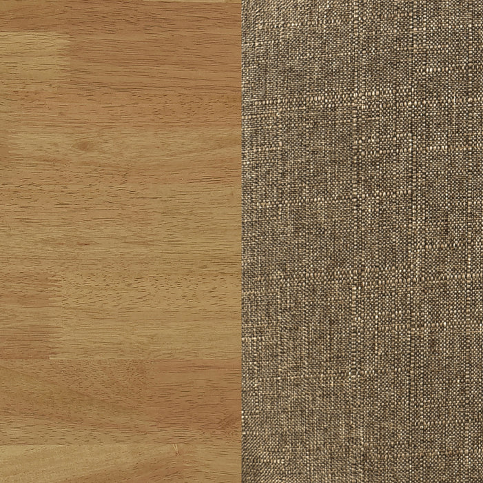 Lean toward island inspiration for easy, carefree dining and an intriguing design as this five-piece hardwood dining table wakes up any room with an energetic motif. A round, beveled tabletop reflects trending easy-living styles, especially for compact or corner placement. This set features a table and four chairs, all built of rubberwood and various wood products with a light walnut finish. Interlocking open wood angles form a quirky base with a geometric vibe, as chair designs add a touch of mid-century personality with angled, splayed legs, a curved backrest, and light brown upholstered seat cushions offering supreme comfort through full foam padding. Sit in comfort for long periods and enjoy the ethereal lightness of a casual dining set that’s also ideal for everyday use. Key Features: • Casual elements in this dining set enhance energetic settings with an angled base design and mid-century influence • Rubberwood and a variety of wood products add lightness to casual kitchens and dining rooms • Open-concept table design blends interlocked angled pieces to create a stylish leg base • A round over beveled circular tabletop offers stylish dimensionality and natural grain markings • Classic chair design reflects mid-century aesthetics with a light presence and open frame • Curved chair backs deliver comfortable seating as tight cushions with light brown upholstery blend in its palette
