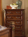 Liberty Furniture Messina Estates 5 Drawer Chest 737-BR41 Constructed with Select Hardwood Solids & Birch Veneers and Cognac Finish. Collection Features:. Bolt-on Rail System. English Dovetail Construction. Fully Finished Drawer Interiors. Full Extension Metal Side Drawer Glides. Bottom Case Dust Proofing. Felt Lined Top Drawers. Antique Brass Bail Hardware. Scrolled Metal Accents. Beveled Arched Glass Mirror on Mirror. Media Chest Bay W19.5 X D17 x H7.
